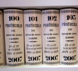 En ámbitos generales, los lomos del protocolo suelen llevar la inscripción del notario a cargo, el número del tomo, el año, la población, el dato de las matrices y el número de orden de la colección y el foliado en letras.